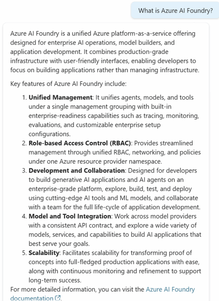 Note the citations here, which point to Microsoft Learn: